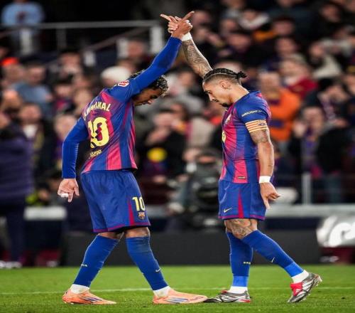 西甲第16轮,巴塞罗那主场对阵奥萨苏纳,在拉菲尼亚上演梅开二度帮助巴萨取得2-0领先后,巴萨2025年西甲已打入100球,比第二名的皇马多了31球。