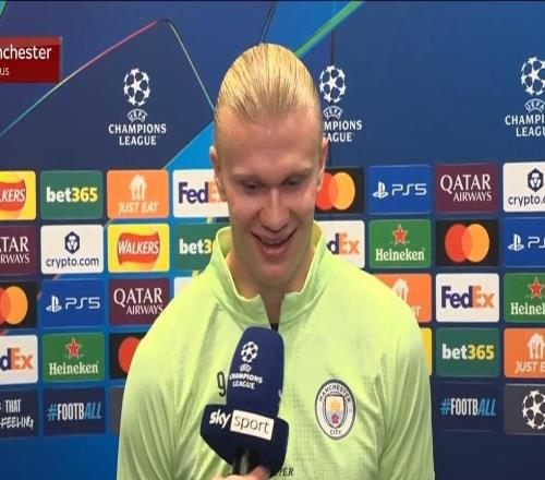 在欧冠联赛阶段第4轮主场迎战多特蒙德的比赛前夕,曼城前锋哈兰德接受了来自意大利天空体育的采访。埃尔林,感谢你来到意大利天空体育,我们很感激你能抽出时间,我看到你完美地从