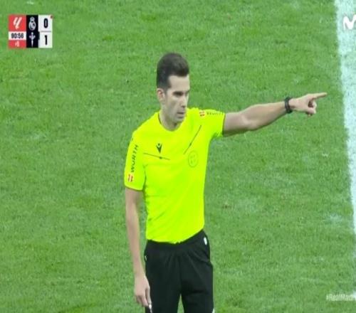 西甲第15轮,皇家马德里主场2-0击败塞尔塔,皇马后卫弗兰-加西亚和阿尔瓦罗-卡雷拉斯先后被罚下,至此,当值主裁亚历杭德罗-金特罗本赛季执法9场西甲已出示8红42黄。本场比赛,32岁的